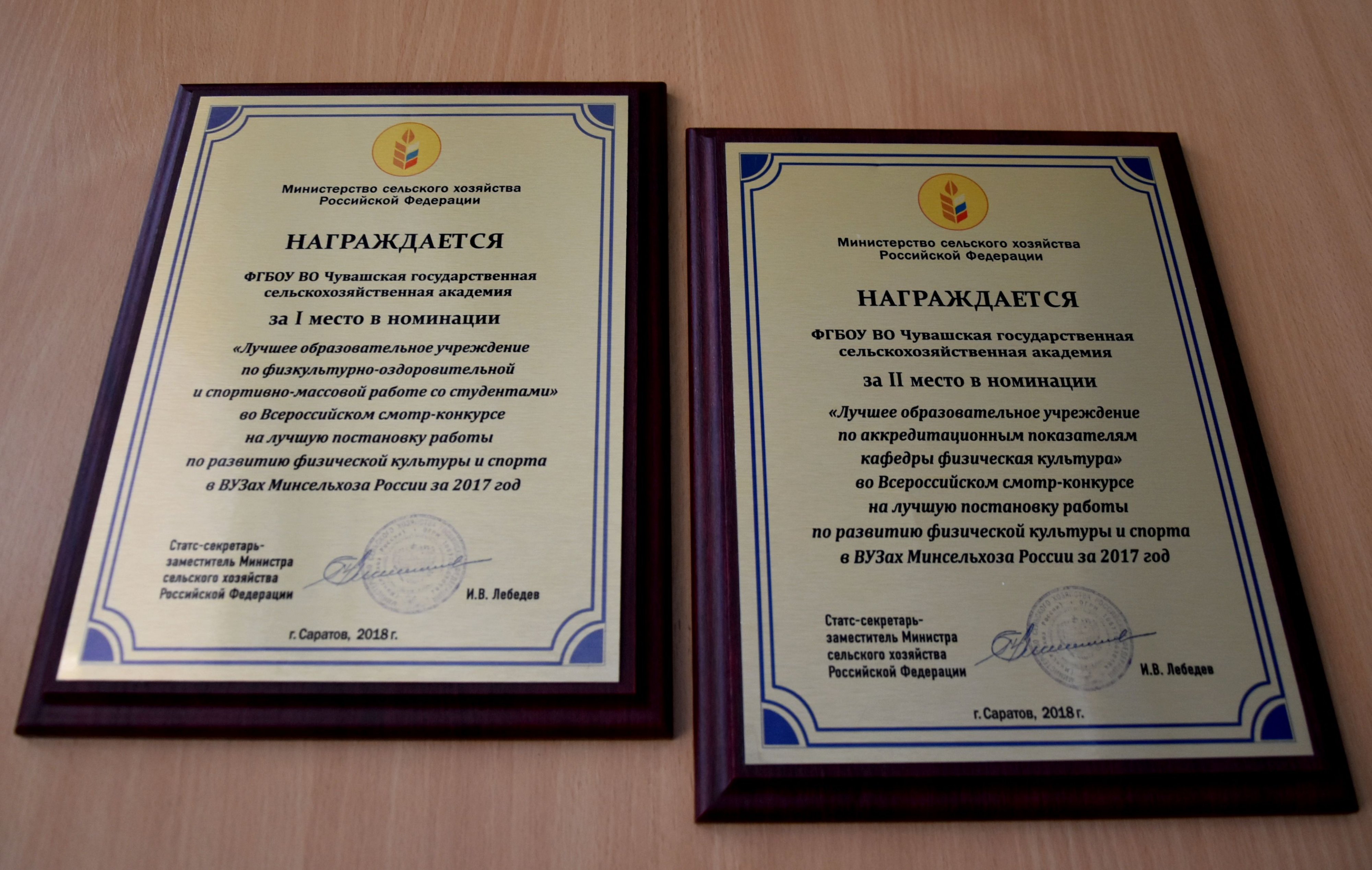Чувашская ГСХА – победитель Всероссийского конкурса на лучшую постановку работы по развитию физической культуры и спорта
