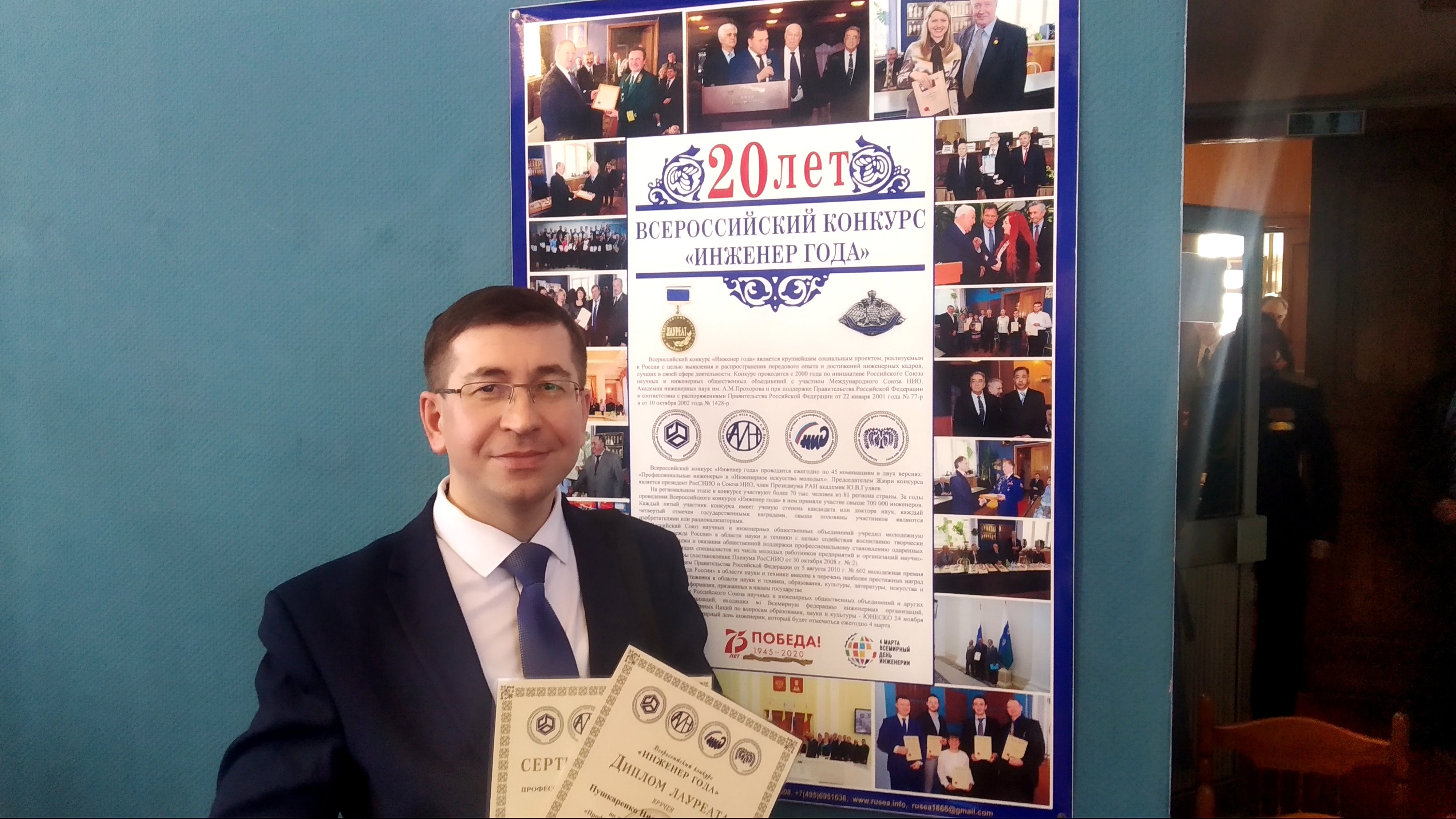 20 февраля 2020 года в Москве в Российском Союзе научных и инженерных общественных объединений – РосСНИО состоялось чествование профессионалов своего дела – победителей XХ Всероссийского конкурса «ИНЖЕНЕР ГОДА», проводимого Российским Союзом научных и инженерных общественных объединений. Высокой оценки своей профессиональной и творческой деятельности и заслуженных наград удостоились два доцента кафедры технического сервиса инженерного факультета Чувашской ГСХА – Роман Андреев и Николай Пушкаренко. Роман Андреев признан победителем, награждён дипломом и памятной медалью «Лауреат конкурса» и занесён в реестр профессиональных инженеров России по версии «профессиональные инженеры» в номинации «Машиностроение». Николай Пушкаренко признан победителем, награждён дипломом и памятной медалью «Лауреат конкурса» и занесён в реестр профессиональных инженеров России по версии «профессиональные инженеры» в номинации «Агроинженерия». Андреев Роман Викторович - специалист высокой профессиональной квалификации. Внес существенный вклад и принимал непосредственное участие в разработке и изготовлении опытного образца малогабаритного капустоуборочного комбайна МКК-1 с модернизированным приводом режущего аппарата. По представленной конструкторской документации налажен серийный выпуск ЗАО «Техма» (г. Чебоксары). В настоящее время занимается разработкой средств механизации возделывания, уборки и сушки хмеля. Изготовлена и испытана мобильная хмелесушилка МХС-25. Активный участник научных конференций и конкурсов. Автор 60 опубликованных научных работ в различных журналах и сборниках, в т.ч. в изданиях, рекомендованных ВАК Министерства образования и науки РФ, имеет 6 патентов на изобретения. Пушкаренко Николай Николаевич - доцент кафедры технического сервиса, декан инженерного факультета ФГБОУ ВО Чувашская ГСХА. Продолжительный период работы (2001–2014 г.г.) связан с совершенствованием конструкций сборных покрытий лесовозных автодорог из плит мелкозернистого бетона, автоматизацией побора состава бетонных смесей. В условиях завода ОАО «КПД» были изготовлены, испытаны и введены в эксплуатацию экспериментальные дорожные плиты из мелкозернистого песка Студенковского карьера Республики Марий. Получено три Свидетельства о государственной регистрации программы для ЭВМ (Автоматизированная система по подбору состава бетона. № 2014613202 от 19 марта 2014 г.; К-Бетон. № 2015661233 от 21 октября 2015 г.; Обработка путевых листов. № 2017664318 от 20 декабря 2017 г.). Николай Пушкаренко является научным руководителем двух грантов: У.М.Н.И.К. - «Разработка автоматизированной системы подбора состава бетона» (2013 г.); «СТАРТ» - «Разработка и изготовление опытного образца автоматизированной системы по подбору состава бетонных смесей» (2014 г.). В ФГБОУ ВО Чувашская ГСХА в составе творческой группы разработаны новая технология и технические средства для возделывания хмеля. Материалы исследований использованы при разработке малогабаритного хмелесушильного комплекса, хмелевышки, хмелепосадчика, окучника-разокучника рядов хмеля. Указанные агрегаты успешно используются в хмелехозяйствах Чебоксарского и Мариинско-Посадского районов Чувашской Республики. |