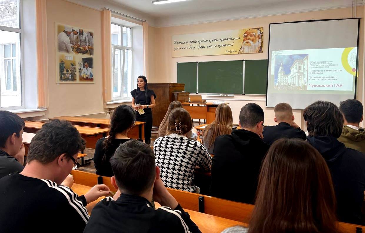 | В виде календаря | Актуальные новости: 28 октября 2025 - 31 октября – «Осеннее авторалли» Чувашского ГАУ! 24 октября 2025 - Интернет-олимпиада по экономике и бухгалтерскому учету: вниманию студентов средних … 24 октября 2025 - Республиканская олимпиада по экономике: вниманию старшеклассников школ! 22 октября 2025 - Тестовый доступ к ЭБС «Руконт» 22 октября 2025 - Тестовый доступ к «Знаниум» 21 октября 2025 - Олимпиада по морфологии и физиологии животных 20 октября 2025 - В Чувашском ГАУ проводится конкурс-выставка "Дары осени" 13 октября 2025 - 22 января 2026 г. – конференция «Актуальные проблемы физической культуры и спорта в… 09 октября 2025 - 18 ноября – конференция «Научно-образовательные и прикладные аспекты производства и… 08 октября 2025 - ШКОЛА СЫРОДЕЛА. Квалификация «Сыродел-мастер» 6 разряда День открытых дверей на факультете ветеринарной медицины и зоотехнии Чувашского ГАУ  Дата: Сегодня, 10:46 | Категория: Новости  В рамках Республиканской недели профориентации 30 октября на факультете ветеринарной медицины и зоотехнии Чувашского ГАУ прошёл День открытых дверей. Школьники из г. Чебоксары и муниципальных округов Чувашии познакомились с учебным процессом и научной деятельностью факультета. Начальник отдела организации приёма Ольга Антонова рассказала о структуре университета и особенностях поступления на которые стоит обратить внимание в 2026 году. Декан факультета Геральд Тобоев отметил, что обучение на факультете сочетает теорию и практику, обеспечивает доступ к современным лабораториям и клиникам, а также открывает широкие карьерные перспективы. Гости посетили музей анатомии домашних животных и патологической анатомии, лабораторию ветеринарно-санитарной экспертизы и приняли участие в мастер-классе «Оперативная ветеринарная помощь», ознакомившись с современным оборудованием и профессией ветеринара. Юные гости охотно приняли приглашение принять участие в олимпиаде по морфологии физиологии животных, которую организовали преподаватели факультета.        |  |