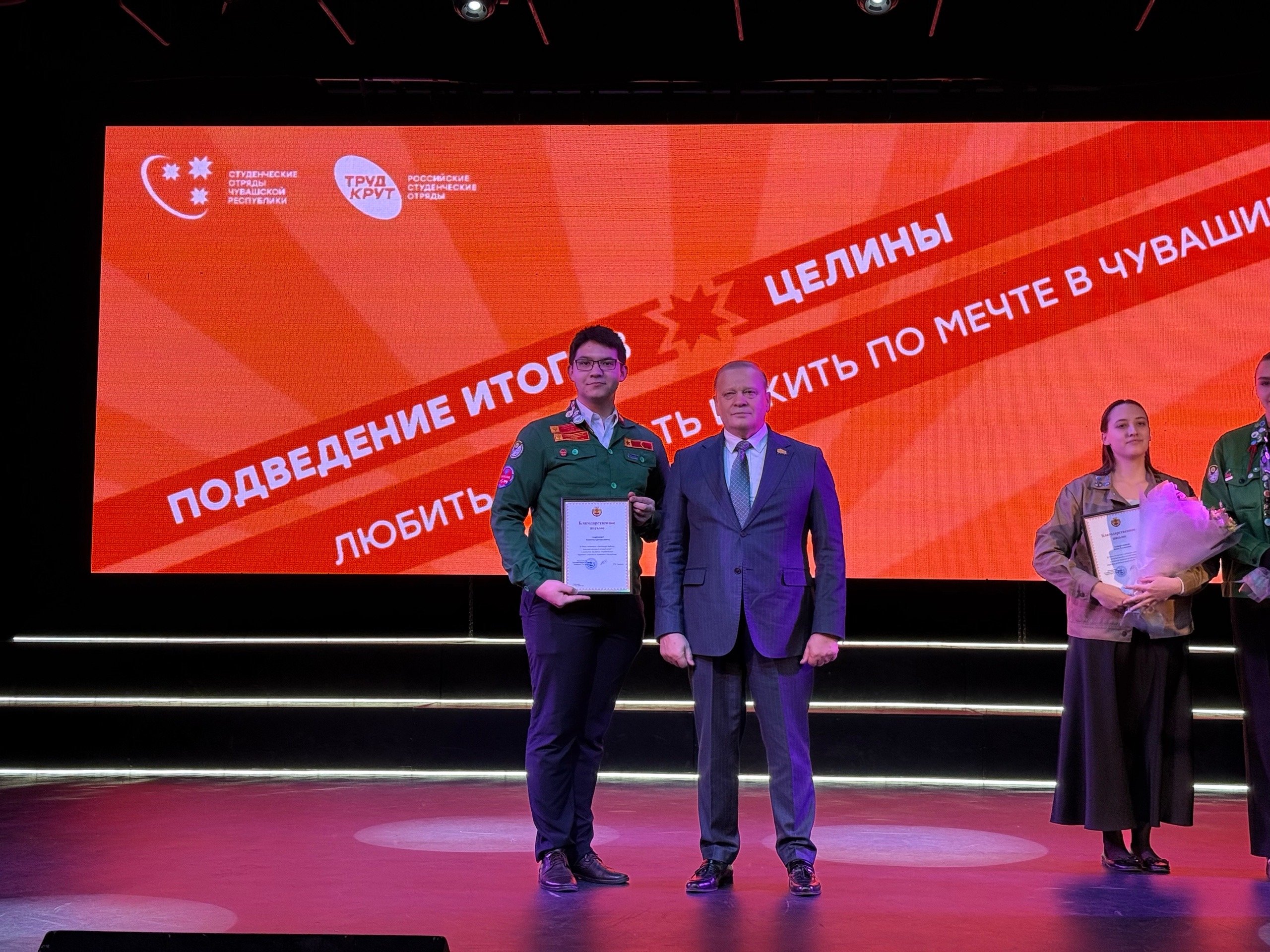 На торжественном закрытии трудового сезона собралось более 400 бойцов из студенческих педагогических, строительных, сервисных, сельскохозяйственных, производственных, медицинских отрядов, проводники пассажирского вагона и представители трудовых отрядов подростков Чувашского регионального отделения Молодежной общероссийской общественной организации «Российские Студенческие Отряды». В их числе – более 20 бойцов Штаба студенческих трудовых отрядов Чувашского ГАУ. С приветственным словом к бойцам обратился генеральный директор Ассоциации «Саморегулируемая организация «Строители Чувашии» Алексей Грищенко, «Очень приятно находиться среди таких прекрасных целеустремленных, молодых людей. Ваш лозунг «Труд крут», и то, что вы делаете своими руками – это здорово. За летний трудовой сезон вы получили хороший трудовой опыт, мощный заряд поддержки друг друга, участвовали в производстве, строили, выпускали продукцию. Спасибо вам за вашу работу!», – отметил Алексей Алексеевич. Благодарственными письмами Государственного Совета Чувашской Республики за вклад в развитие трудового движения Чувашской Республики награждены командир Штаба СТО Чувашского ГАУ Анастасия Губанова и командир ветеринарного отряда «Зверополис» Кирилл Семенов. Благодарностями были отмечены бойцы, успешно отработавшие целину, как на территории Чувашской Республики, так и за ее пределами. Благодарностей удостоились 15 бойцов из студенческих отрядов аграрного университета «КАМАЗ», «Солнечный ветер», «Атал», «Жемчужина», «Зверополис». Проректору по воспитательной работе, молодёжной политике и социальному развитию Чувашского ГАУ Илье Царевскому командир регионального отделения МООО «РСО» Дмитрий Трынов вручил форменную куртку-целинку за оказанную помощь и содействие в реализации мероприятий студенческих отрядов. Торжественное мероприятие завершилось исполнением новой песней студенческих отрядов Чувашии «Позади ветер», автором которой стал руководитель пресс-службы штаба студенческих отрядов Чувашского ГАУ Леонид Семенов. «Мероприятия получилось по-настоящему праздничным. Очень неожиданно было услышать песню на закрытии трудового сезона. Это стало для меня приятным сюрпризом: очень понравилась итоговая работа», – делится впечатлениями Леонид. Для справки: В 2025 году был трудовых отрядов вошли 2789 представителей молодежи Чувашии. В регионе в этом году работали более 40 студентов из восьми регионов России: в составе Окружного студенческого сельскохозяйственного отряда «Чува» и Межрегионального медицинского отряда «Вита». Были сформированы не только студенческие отряды, но и трудовые отряды подростков, куда входят учащиеся школ. География деятельности отрядов охватывает Чувашскую Республику, Республику Татарстан, Алтайский, Краснодарский и Камчатский край, города Санкт-Петербург, Москва, Новосибирскую, Сахалинскую и Иркутскую области. |