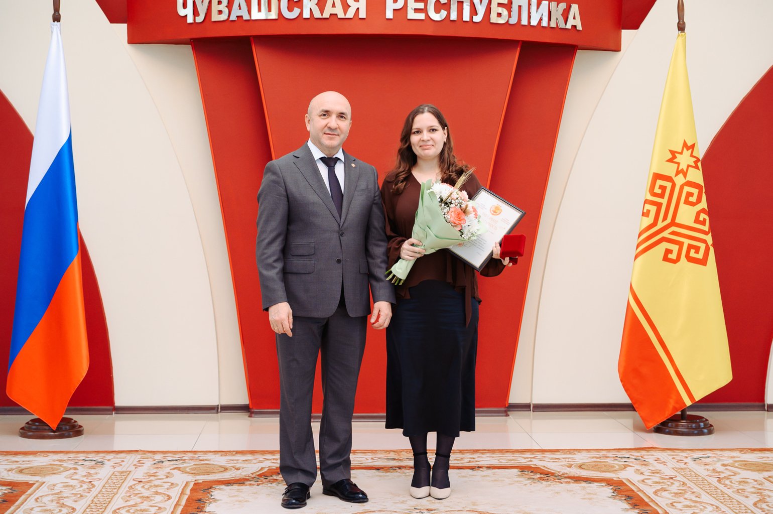 В торжественной церемонии приняли участие Председатель Кабинета Министров Чувашской Республики Сергей Артамонов, Депутат Государственной Думы Алла Салаева, председатель Государственного Совета Чувашской Республики Леонид Черкесов, вице-премьер, министр сельского хозяйства Чувашии Андрей Макушев. «Ежегодно мы отмечаем наш профессиональный праздник после завершения уборочных работ, подводя итоги. Мы помним, что 2025 год был объявлен Президентом страны Годом защитника Отечества, а Главой Чувашии – Годом Победы и патриотизма. И я считаю, что в целом мы с вами достойно справились с обеспечением продовольственной безопасности нашей страны, выполнили и даже перевыполнили планы. Успех – это всегда результат сочетания тяжелого труда и удачи, и в этом году мы постарались очень мощно. Огромное спасибо за это всем вам, наши труженики, каждый из вас внес в это большую лепту», — отметил Председатель Кабинета Министров Чувашской Республики Сергей Артамонов, открывая торжественное мероприятие. «Этот год, несмотря на многие факторы, стал годом достижений и высоких показателей. Все эти результаты достигнуты благодаря поддержке Главы Чувашии Олега Николаева, Правительства, а также неустанному труду аграриев. Развивая сельское хозяйство, мы создаем основу для новых проектов, рабочих мест и улучшения жизни на селе. Сегодня аграрии своим трудом создают комфортные условия для проживания, работы и самореализации на сельской территории. Спасибо вам за труд. С праздником», — сказал вице-премьер, министр сельского хозяйства Чувашии Андрей Макушев. Указами Главы Чувашской Республики за значительный вклад в развитие сельского хозяйства и многолетний добросовестный труд почетное звание «ЗАСЛУЖЕННЫЙ РАБОТНИК СЕЛЬСКОГО ХОЗЯЙСТВА ЧУВАШСКОЙ РЕСПУБЛИКИ» присвоено десяти лучшим специалистам отрасли. Также, за заслуги в области промышленности и многолетний самоотверженный труд, почетное звание «ЗАСЛУЖЕННЫЙ РАБОТНИК ПРОМЫШЛЕННОСТИ ЧУВАШСКОЙ РЕСПУБЛИКИ» удостоились два выдающихся представителя пищевой промышленности. За многолетнюю добросовестную работу Благодарность и часы от Главы Чувашской Республики получили семь тружеников. Депутат Государственной Думы Алла Салаева отметила вклад специалистов в развитие сельского хозяйства, вручив Благодарственные письма Депутата Государственной Думы Федерального Собрания Российской Федерации четырем лучшим работникам отрасли. Почетной грамотой Государственного Совета Чувашской Республики, врученной председателем Государственного Совета Чувашской Республики Леонидом Черкесовым, были награждены четыре работника АПК за значительный вклад в развитие агропромышленного комплекса. Благодарность за большой вклад в развитие агропромышленного комплекса была объявлена коллективу ООО «Агрофирма Таябинка» и специалисту ООО «Волжское перерабатывающее предприятие». Приказами Министерства сельского хозяйства Российской Федерации за многолетний добросовестный труд в системе агропромышленного комплекса Почетной грамотой Министерства сельского хозяйства Российской Федерации награждены три работника сферы АПК, еще четыре работника получили Благодарности Министерства сельского хозяйства Российской Федерации. Поздравляем с наградами представителей Чувашского государственного агра