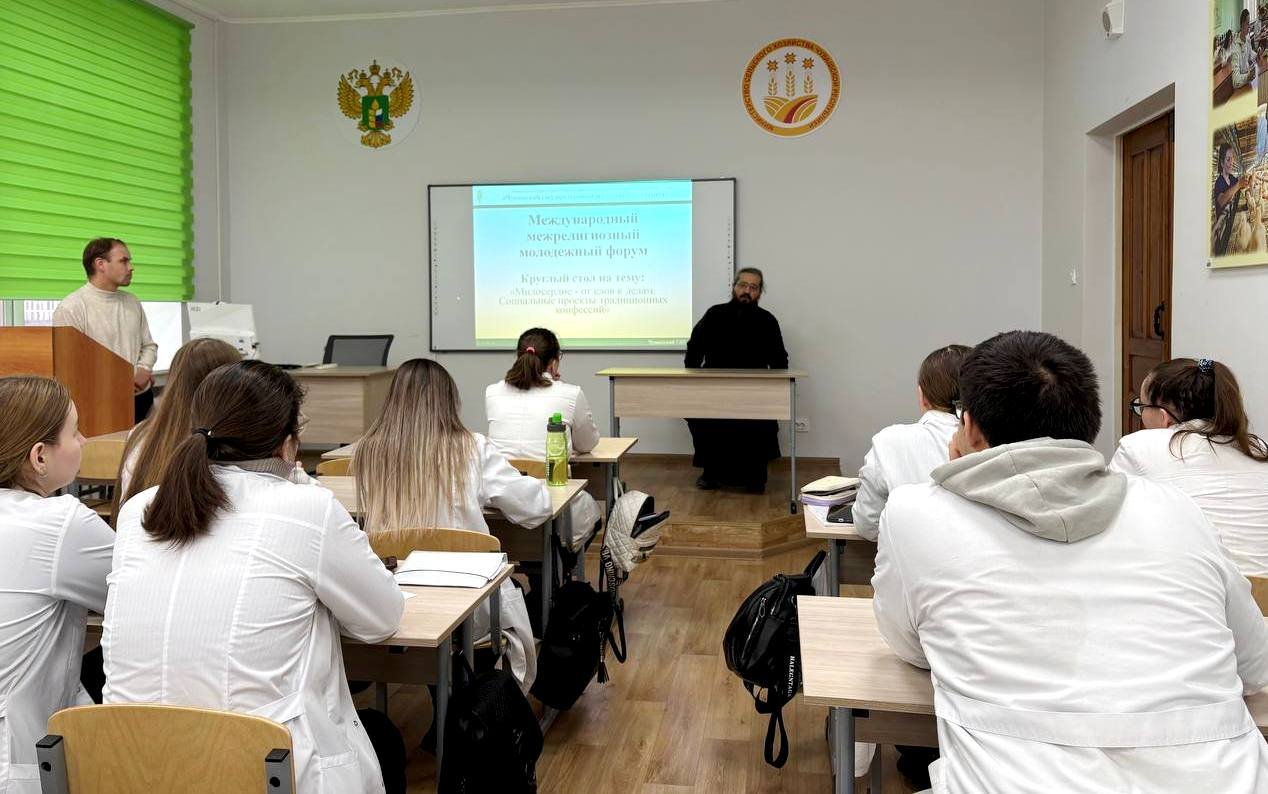 Начальник отдела воспитательной и социальной работы Алексей Леснов открыл мероприятия с доклада о деятельности волонтерского корпуса Чувашского ГАУ и различных направлениях добровольчества в университете. Особое внимание было уделено социальному волонтерству, а именно помощи ветеранам университета и агропромышленного комплекса Чувашской Республики, а также организации мероприятий для детей из домов-интернатов, реабилитационных центров и т.д. Гостем мероприятия стал протоиерей Михаил Павлов, председатель Епархиального отдела по церковной благотворительности и социальному служению, настоятель храма в честь иконы Божией Матери «Скоропослушница» г. Чебоксары. Отец Михаил рассказал о деятельности сестер милосердия. Сестры милосердия посещают отделения паллиативной помощи, онкологические отделения, организовывают питание для бездомных, собирают гуманитарную помощь для нуждающихся. Участники поделились опытом реализации благотворительных проектов, обсудили возможности совместной работы и обменялись идеями по развитию волонтерства и милосердия в регионе. Круглый стол подчеркнул важность активных действий на базе духовных ценностей и стал площадкой для вдохновения молодежи на социально значимую деятельность, способствующую укреплению гражданского общества и гармонизации межрелигиозных отношений. |