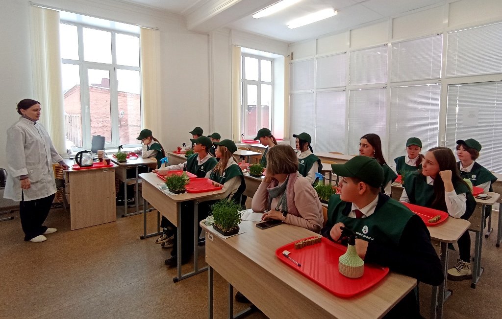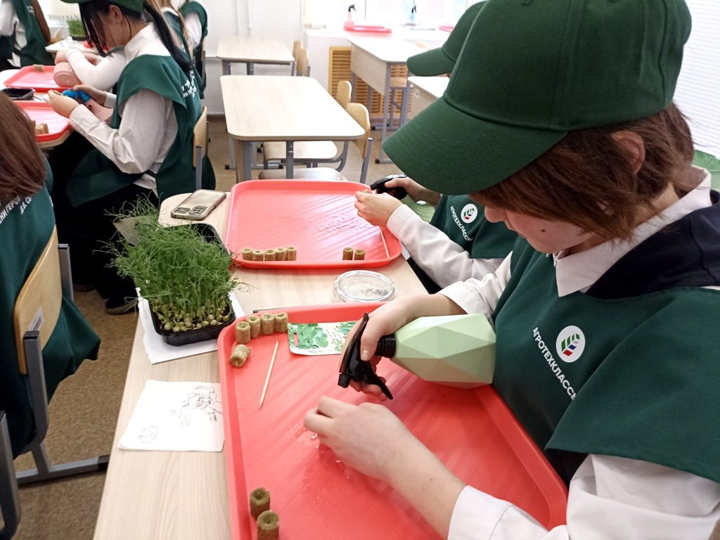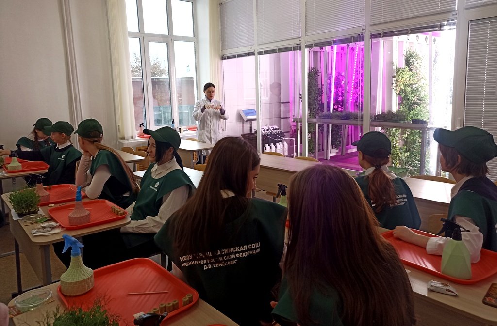 Занятие провела Надежда Михайлова, преподаватель кафедры земледелия, растениеводства, селекции и семеноводства факультета биотехнологий и агрономии. Вертикальные гидропонные системы позволяют выращивать зелень на ограниченном плане, экономя воду и пространство. Надежда Николаевна объяснила, как в условиях ограниченного пространства можно выращивать зелень круглый год, контролируя температуру, освещённость и состав питательного раствора. Школьники увидели, как из маленьких семян вырастают полноценные зеленные культуры в многоярусных модулях. Такие практикумы помогают школьникам не только освоить азы агрономии, но и понять роль инженерии и информатики в современном сельском хозяйстве. Во время занятий ученики не просто слушали лекцию — они участвовали в мастер-классе, на котором узнали о важности подготовки субстрата, выбора семян зелени, плотности посева и сроках появления всходов. Вертикальные гидропонные системы позволят агроклассникам увидеть результат своей работы уже через несколько недель, что особенно мотивирует молодых исследователей. |