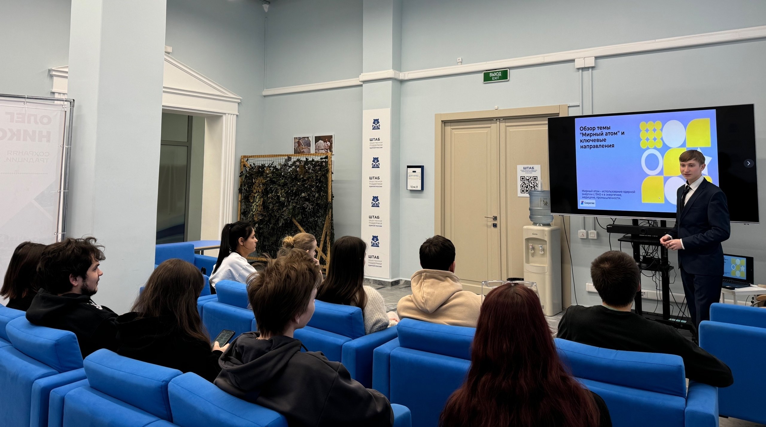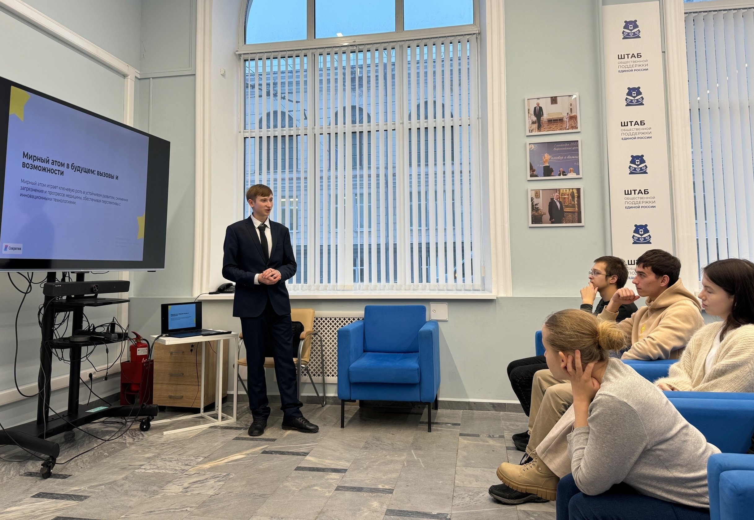 Руководитель студенческого научного общества Илья Антипов провел познавательный блок «Вдохновляйся!», посвящённый атомной промышленности. Первичное отделение Движения Первых Чувашского ГАУ дополнило прошедшую встречу тематическими заданиями из блока «Мечтай!», что позволило посмотреть иначе на историю атомной промышленности. В конце встречи прошёл тематический блок «Действуй!», где студенты смогли закрепить полученные в ходе встречи новые знания и узнать друг друга. Более 10 самых активных и ярких представителей студенческих объединений Чувашского ГАУ отметили, что мероприятие получилось динамичным. Оно позволило укрепить дружбу двух объедений и поставить совместные цели на предстоящий год. «На встрече узнал много нового об истории развития атомной промышленности в России. Уверен, что такие встречи должны стать хорошей традицией, ведь они расширяют наш кругозор», – говорит Владимир Авданов, активист Движения ПервыхЧувашского ГАУ. |