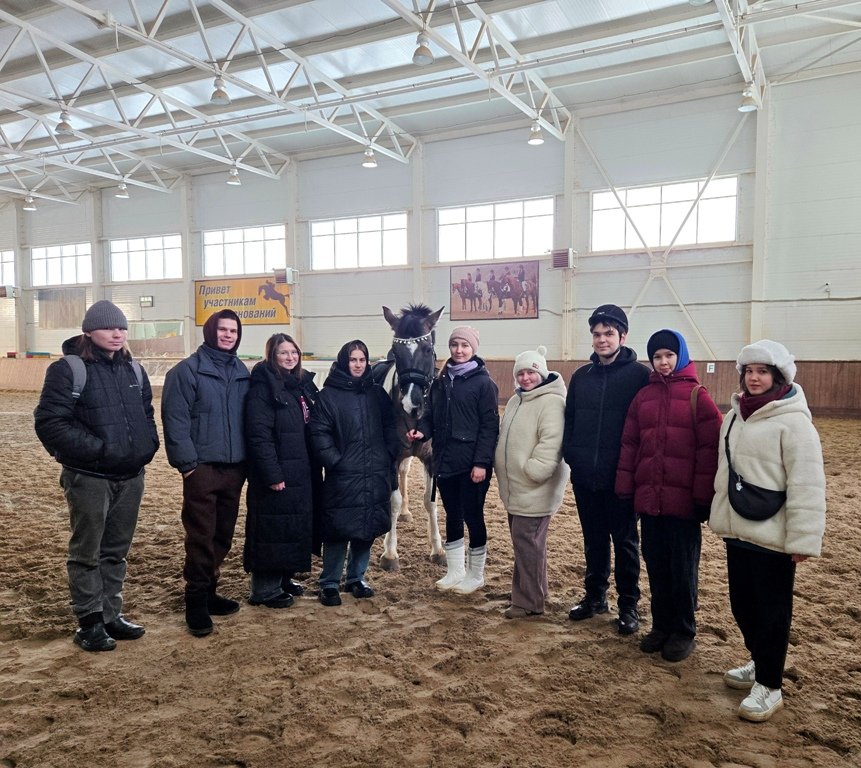 Спортсмены школы выезжают на соревнования регионального и российского уровней и являются неоднократными победителями и призерами в городах Москва, Нижний Новгород, Кострома, Ижевск, Ульяновск, Сыктывкар, Самара, Пермь и др. Конноспортивная школа занимается и обучением верховой езде. Экскурсию по конноспортивной школе для студентов провела инструктор-методист по спорту Полина Дружина. Началось выездное занятие со знакомства с материально-технической базой школы. На сегодняшний день конноспортивная школа располагает крытым манежем, двумя разминочными и одним конкурным полями, тремя конюшнями, 60 денниками, тремя левадами и т.д. В школе обучается 164 учащихся. Поголовье лошадей – 63 головы. Студенты получили много полезной информации по содержанию и уходу за лошадьми, также контактное общение с животными. Узнали от специалистов, как производится чистка лошади, как проходит кормление, приняли участие в мастер-классе по седловке лошади, научились пользоваться амуницией. Под руководством Полины студенты получили практический опыт в технике управления лошадью на манеже. |