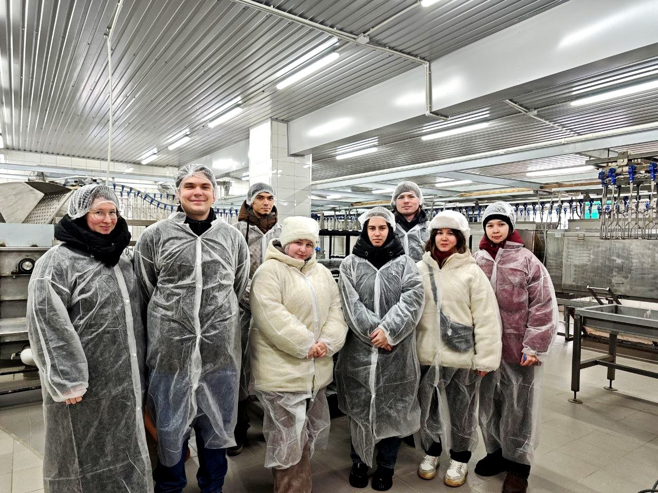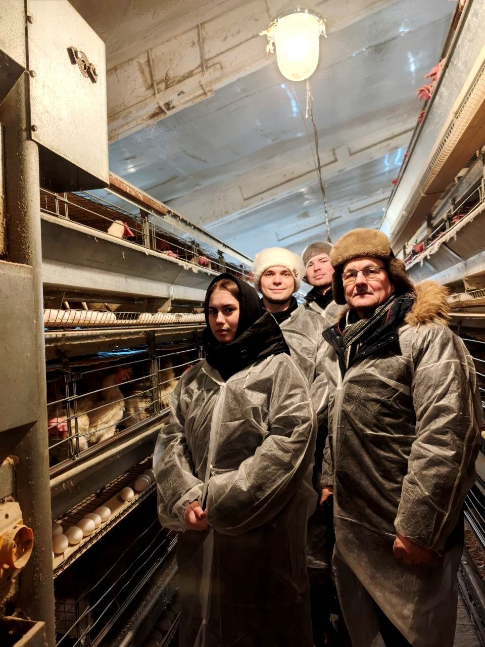 Занятие прошло по дисциплине "Птицеводство". Студентам было интересно увидеть, как содержатся птицы на фабрике - а их там более 1 миллиона! Начальник производства Ольга Храмова, кстати, выпускница нашего вуза, рассказала и показала, как организовано современное содержание птиц, какие технологии используются для обеспечения их здоровья и продуктивности, как функционируют производственные цеха: от ухода за птицами до автоматизированного сбора и упаковки яиц. Цеха оснащены автоматизированной системой регулирования микроклимата и светового режима, ниппельного поения птицы и пометоудаления. Ольга Леонидовна сначала провела студентов в цех содержания кур-несушек промышленного стада, где используются четырехярусные батареи. Затем особый интерес студентов вызвал современный цех с десятиярусными клеточными батареями вместимостью до 100 тысяч голов кур-несушек. Посмотрели яйцесклад, цех яичного порошка и убойных цех, в которых была произведена полная реконструкция и установлено современное оборудование. |