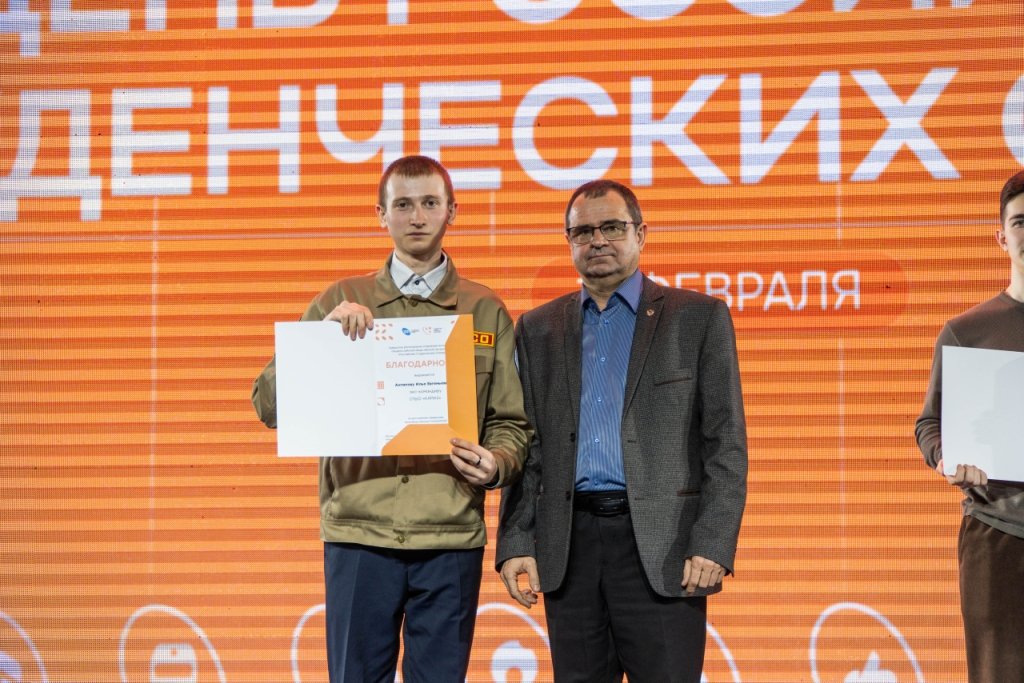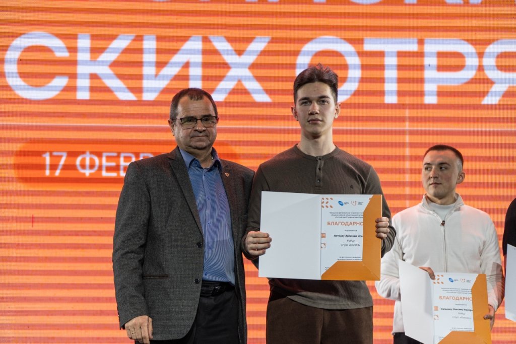 На празднование Дня Российских студенческих отрядов прибыл Глава Чувашской Республики Олег Николаев. Он ознакомился с работодателями, которые приняли участие в Карьерном форуме. Праздничная программа началась с деловой части. Фотовыставка «ТОПовая смена» представила известных лидеров страны и республики, начинавших свой путь в стройотрядах. На выставке работодателей-партнеров «Жить и работать в Чувашии» молодежь могла ознакомиться с вакансиями и перспективами карьерного роста на местных предприятиях. Так, проект «Чува» на базе ООО «Мега Юрма» уже привлёк юношей и девушек из Татарстана, Марий Эл, Пермского края, а также Самарской и Пензенской областей. Каждый четвертый участник трудовой смены вернулся на производство вновь, рассматривая Чувашию как регион для дальнейшего профессионального развития. «За четверть века в студотрядах Чувашии набирались опыта более 80 тысяч человек: для каждого из них это стало временем личных историй, профессионального старта и обретения важных жизненных навыков. Сегодня в Чувашии действуют 94 отряда – почти 3000 молодых людей выбирают путь труда, ответственности и реальных дел», – подчеркнул Глава Чувашии Олег Николаев. Главным результатом работы регионального отделения в 2025 году стало признание Чувашии одним из лидеров студенческого движения в стране. На всероссийском конкурсе в Москве республика заняла 2-е место в рейтинге регионов с численностью студентов от 30 до 65 тысяч человек. Поздравил студентов и Председатель Государственного Совета Чувашской Республики Леонид Черкесов. «Многие, прошедшие эту школу, стали успешными руководителями – в медицине, на государственной службе, в бизнесе. Те годы дали нам главное: понимание взаимовыручки, важности работы в команде и настоящие уроки жизни», – отметил Леонид Ильич. Поздравил с Днем Российских студенческих отрядов участников торжественного мероприятия начальник Управления Главы Чувашской Республики по молодежной политике Алексей Иванов. Он отметил Благодарственным письмом Управления Главы Чувашской Республики по молодежной политике за большой личный вклад в развитие студенческого трудового движения и содействие в реализации молодежной политики на территории Чувашской Республики Анну Гаврилову, методиста Штаба СТО Чувашского ГАУ, а также вручил Благодарность Федерального агентства по делам молодежи за добросовестный труд начальнику отдела молодежной политики Чувашского ГАУ Анне Николаевой. Председатель Правления Чувашского регионального отделения молодёжной общероссийской общественной организации «Российские Студенческие Отряды» Юлия Аланова поздравила бойцов с праздником и отметила, что в развитии нашего движения важен вклад каждого: и ветеранов, и бойцов, и работодателей, и наставников. Нагрудный знак ЧРО МООО «РСО» за активную работу в студенческом отряде вручил командир регионального отделения Дмитрий Трынов 25 бойцам студенческих трудовых отрядов Чувашской Республики. В их числе бойцы Штаба СТО Чувашского ГАУ: Леонид Семенов и Малина Смирнова, Благодарностью за достижение наивысших производственных показателей на предприятиях Чувашской Республики были отмечены представители Штаба трудовых отрядов Чувашского ГАУ: бойцы СВетО «Зверополис» Юлия Петрова и Дарья Обухова и бойцы СПрО «КАМАЗ» Илья Антипов