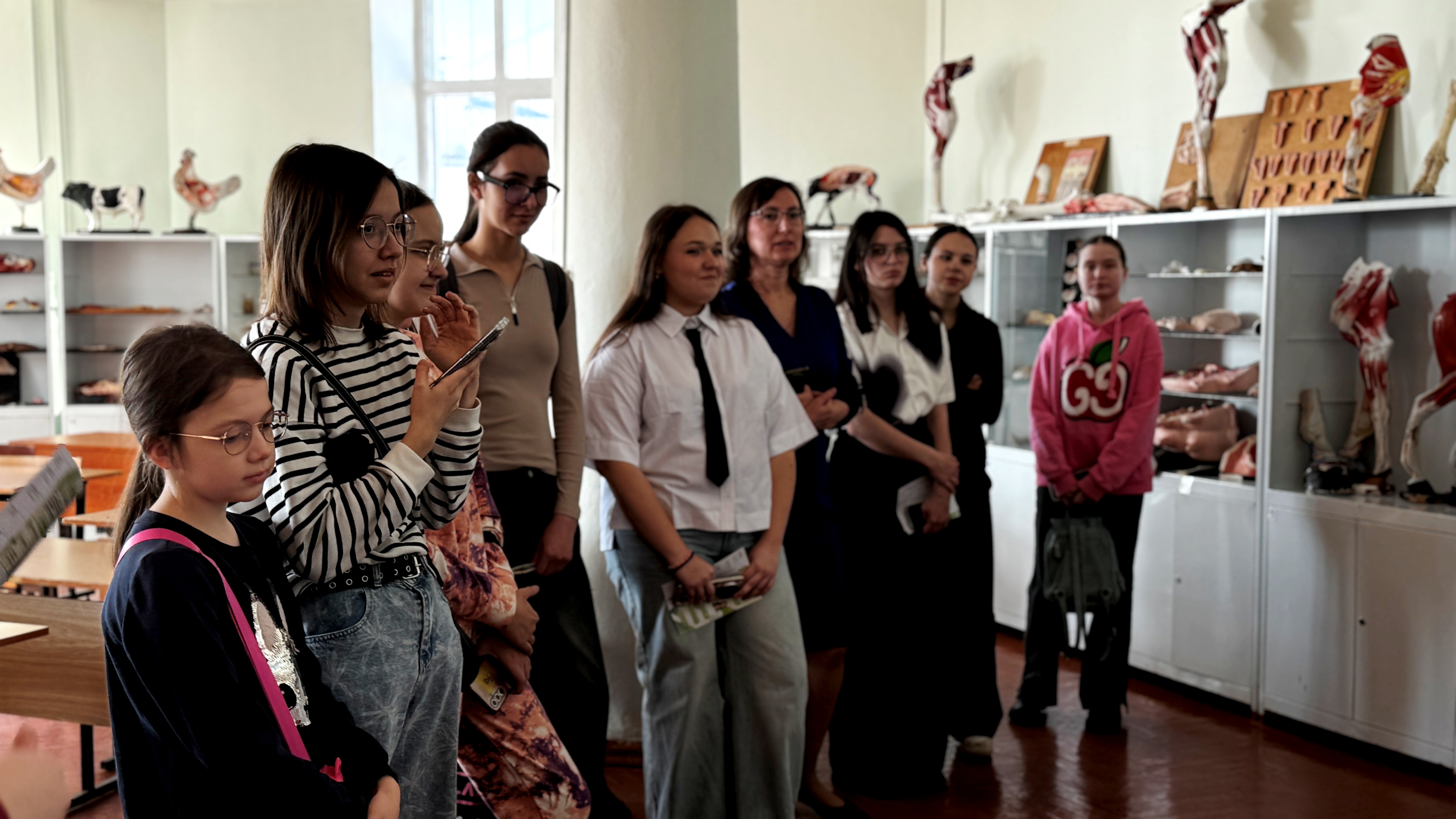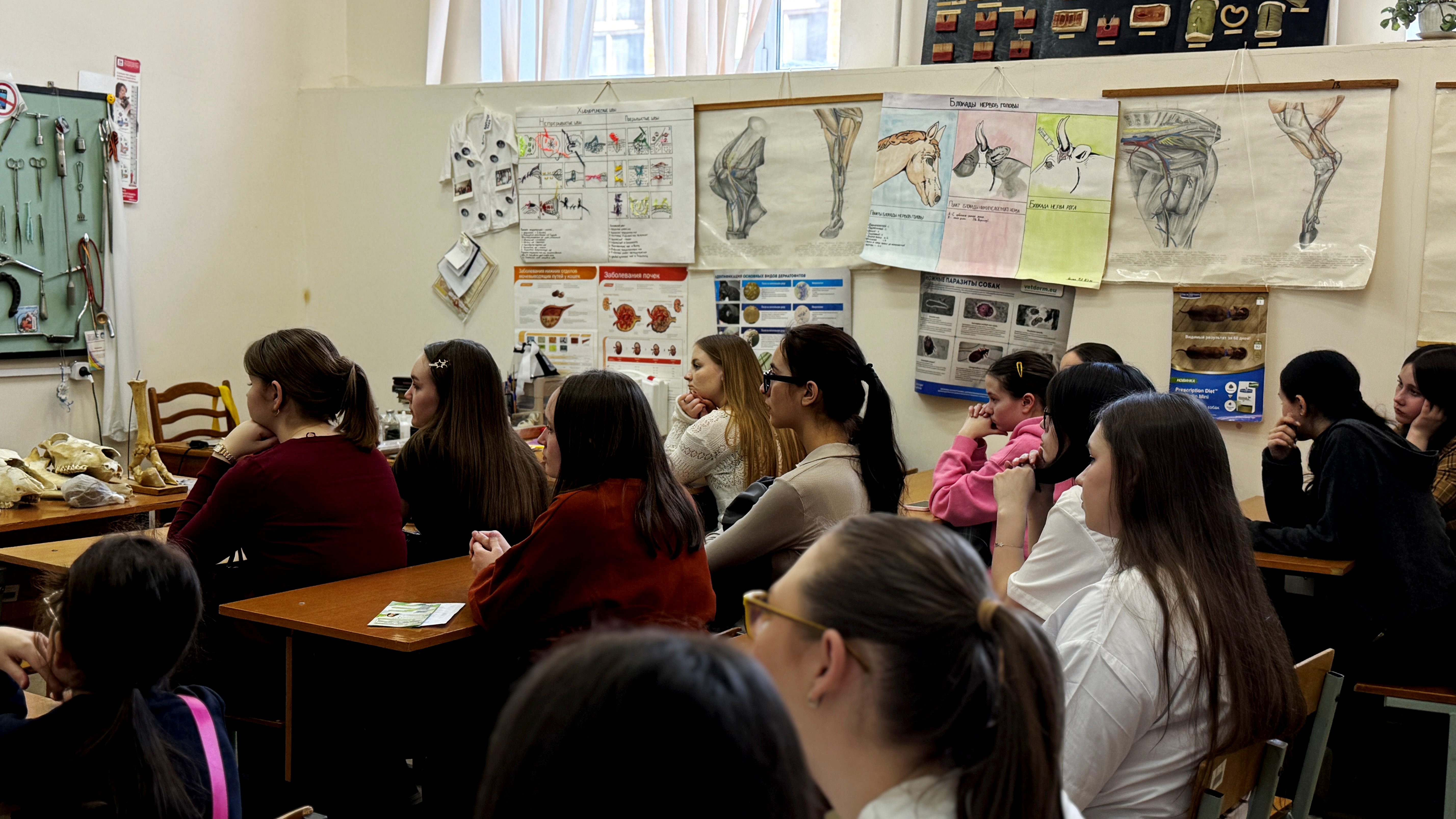 Сначала школьники посетили ветеринарную клинику «Усы, лапы, хвост». Заведующая клиникой, доцент кафедры эпизоотологии, паразитологии и ветеринарно‑санитарной экспертизы факультета ветеринарной медицины и зоотехнии Анастасия Димитриева подробно рассказала и наглядно продемонстрировала, какие инструменты используются для оказания ветеринарной помощи животным. Затем провела экскурсию по ключевым зонам учреждения: показала кабинет УЗИ, зону осмотра, передержки и операционную. Затем группа направилась в музей патологической анатомии. Ассистент той же кафедры Глеб Лазуркин познакомил ребят с коллекцией образцов, объяснил, как различные патологии влияют на организм животных, и привёл примеры реальных клинических случаев. Он также рассказал о методах диагностики заболеваний и важности своевременного выявления отклонений. На мастер‑классе «Оперативная ветеринарная помощь» доцент кафедры морфологии, акушерства и терапии Алексей Альдяков подчеркнул значимость навыков оказания первой ветеринарной помощи. Эксперт продемонстрировал необходимые инструменты и на практике показал базовые приёмы экстренной помощи животным, а школьники смогли задать все интересующие их вопросы о ситуациях, требующих срочных мер. В музее анатомии домашних животных ассистент кафедры морфологии, акушерства и терапии Анастасия Семенова на примере экспонатов продемонстрировала строение скелета различных видов — от мелких домашних питомцев до крупного рогатого скота. Объяснила, как по особенностям черепа определить вид животного, и рассказала о различиях в анатомии, влияющих на диагностику и лечение. Завершилась экскурсия в лаборатории фармакологии и токсикологии, которую показала Инна Ефимова, заведующая кафедрой эпизоотологии, паразитологии и ветеринарно‑санитарной экспертизы. Инна Олеговна познакомила школьников с разнообразием препаратов для лечения животных и птиц, объяснила принципы их действия и важность грамотного подбора лекарств. Особо отметила, что, в отличие от людей, животные не могут рассказать о своих симптомах, поэтому от ветеринара требуется высокая квалификация и внимательность, чтобы правильно поставить диагноз и назначить эффективное лечение. Экскурсия дала старшеклассникам возможность изнутри увидеть работу ветеринарных специалистов, познакомиться с оборудованием и лабораториями, а также задуматься о выборе будущей профессии. |