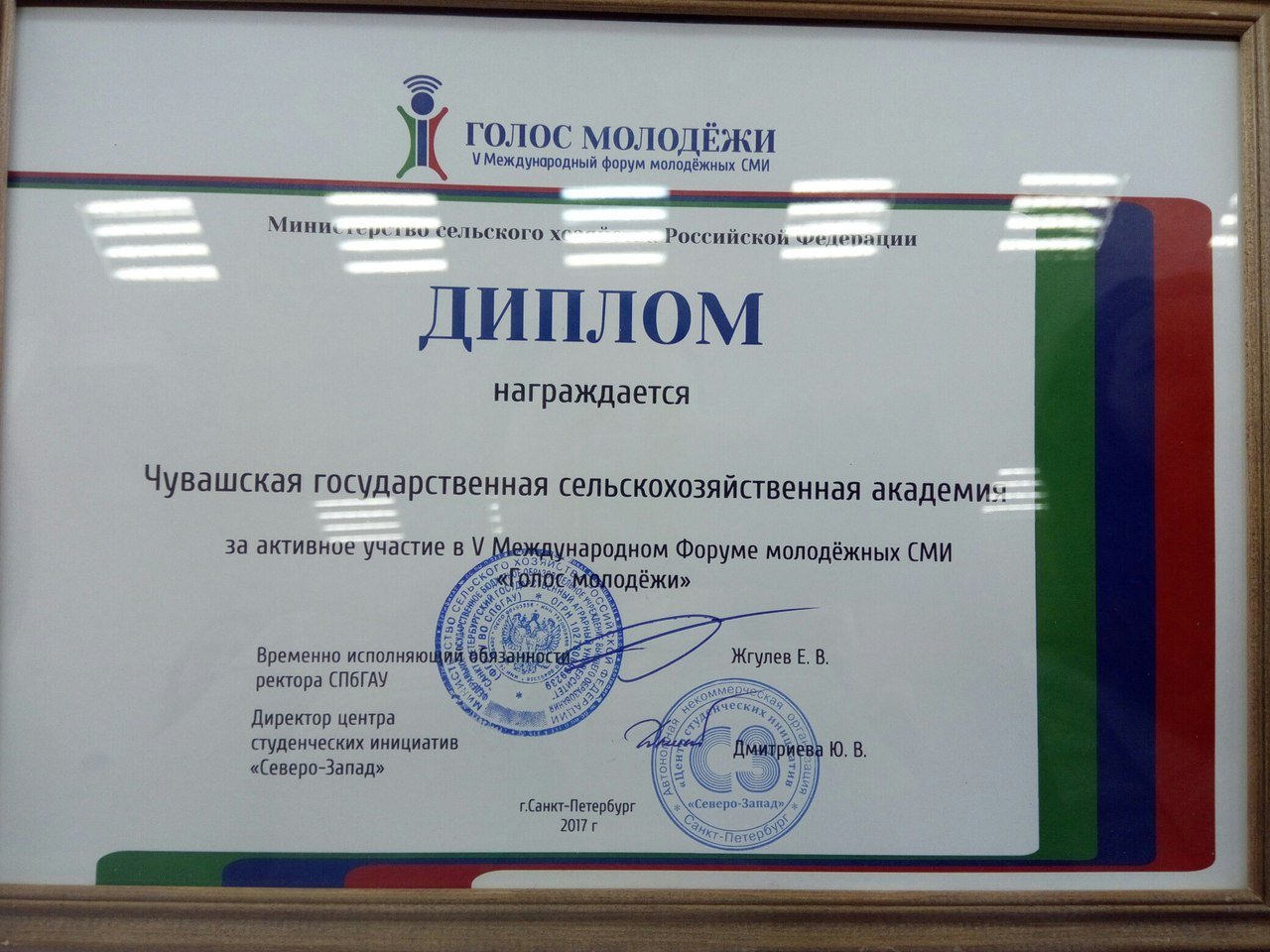 Обучение в вузе не должно ограничивать студента в его интересах. Например, если ты учишься в сельскохозяйственном вузе, это не значит, что ты не можешь увлекаться журналистикой и средствами массовой информации. 21 век давно признан веком информационных технологий. Сегодня информация стала неотъемлемой частью нашей жизни, значительно облегчая и усложняя ее. Журналистика очень многоплановая деятельность, поэтому даже студент аграрного вуза может найти себя в той или иной ее области. Это может положительно повлиять на основную профессию, делая человека более коммуникабельным и способным излагать свои мысли, как на бумаге, так и на публике. 13 и 14 апреля V Международный форум молодежных СМИ «Голос Молодежи» созвал в славный город Пушкин Ленинградской области более 14 вузов из более 12 регионов Российской Федерации и более 10 стран мира. В этом году Форум посвящен Году Экологии в России и важнейшей на сегодняшний день теме кибербезопасности. Корреспонденты студенческой газеты Чувашской государственной сельскохозяйственной академии «Студвестник Чувашской ГСХА» тоже приняли участие в Форуме «Голос Молодежи». Это студенты 2 курса факультета ветеринарной медицины и зоотехнии Анна Степанова и Ирина Федякова. Организатором мероприятия выступает Санкт-Петербургский государственный аграрный университет, «Центр студенческих инициатив «Северо-запад» и Совет студенческого самоуправления СПбГАУ. Информационным партнером Форума является Министерство сельского хозяйства Российской Федерации. Основными направлениями проекта являются развитие связей с регионами, развитие студенческих теле- и радиостудий, межрегиональная пресс-служба, IT-направление. На протяжении двух дней «Голоса Молодежи» представители молодежных СМИ, стремящиеся сформировать безопасное информационное пространство в своих вузах, общались с интересными экспертами на круглых столах и перенимали их полезный опыт на мастер-классах. Живой, свободный диалог создавал комфортную атмосферу для взаимодействия с профессионалами. Участники понимали, что только активное участие и консолидация позволит эффективно решать задачи развития регионов, страны и мира. В ходе пленарной сессии участникам дали понять, что информация действительно является пятой властью. Были подняты вопросы о манипуляторных технологиях, кибероружии, сокровенных смыслах в том или ином продукте СМИ. Спикеры пленарного заседания пожелали иметь свое критическое мнение и создавать благоприятный контент для гражданской киберзащиты. Представители нашей академии в этом году выступили на Форуме в качестве экспертов. Их голос услышали на круглом столе «Медиаконтент как инструмент развития». Тема выступления - «Студвестник Чувашской ГСХА» как инструмент взаимодействия со студентами». Помимо этого круглого стола можно было посетить также «Межкультурный диалог» и «Общество: от Кибервойны к Кибермиру». Завершением дня стал кинолекторий, где организаторы в очередной раз доказали могущество информации и СМИ в целом. Ярким примером стал просмотр фильма «Безумный город» об амбициозном журналисте, готовом пойти на все ради карьеры. Второй день был насыщен круглыми столами: • «Творческая проектная деятельность в сфере фотоискусства»; • «Копирайтинг»; • «Мемы: влияние на наши поступки». Приятным д