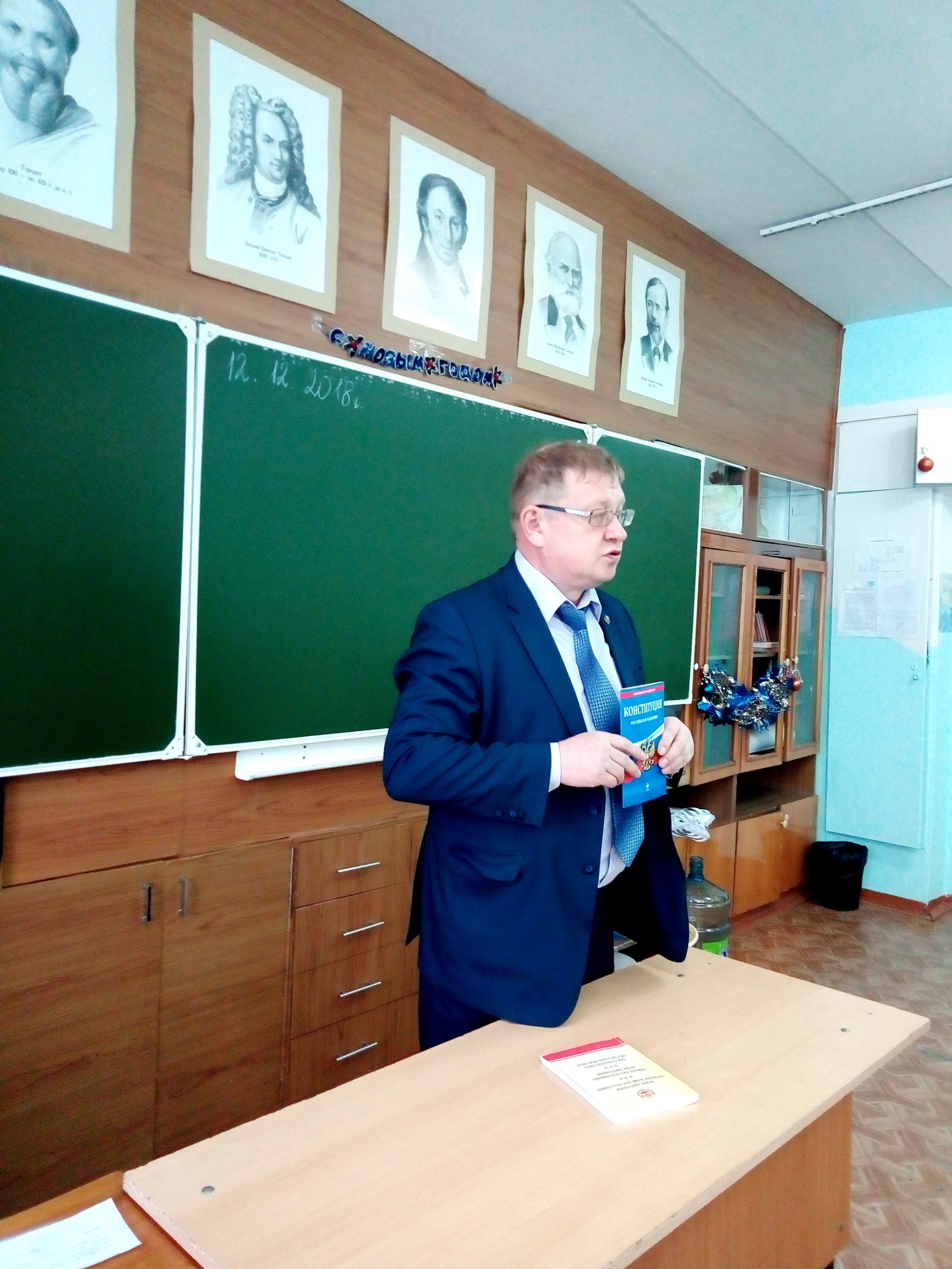 12 декабря в рамках профориентационных мероприятий доцент кафедры общеобразовательных дисциплин Чувашской ГСХА Владислав Петров встретился с учащимися выпускных классов МБОУ «Средняя общеобразовательная школа № 17» г. Чебоксары. Владислав Руфович познакомил школьников с условиями обучения в Чувашской государственной сельскохозяйственной академии. Подробно рассказал о правилах приема в стабильно, успешно развивающийся, с глубокими традициями вуз Чувашской Республики. Всем учащимся были розданы информационные буклеты. Также преподаватель затронул в своем выступлении тему 25-летия принятия Конституции Российской Федерации. В доступной форме он познакомил ребят с историей принятия и сущностью важнейшего документа государства, особо акцентируя внимание на вопросе юридических свойств Конституции. В конце своего выступления Владислав Руфович ответил на вопросы учеников. |
