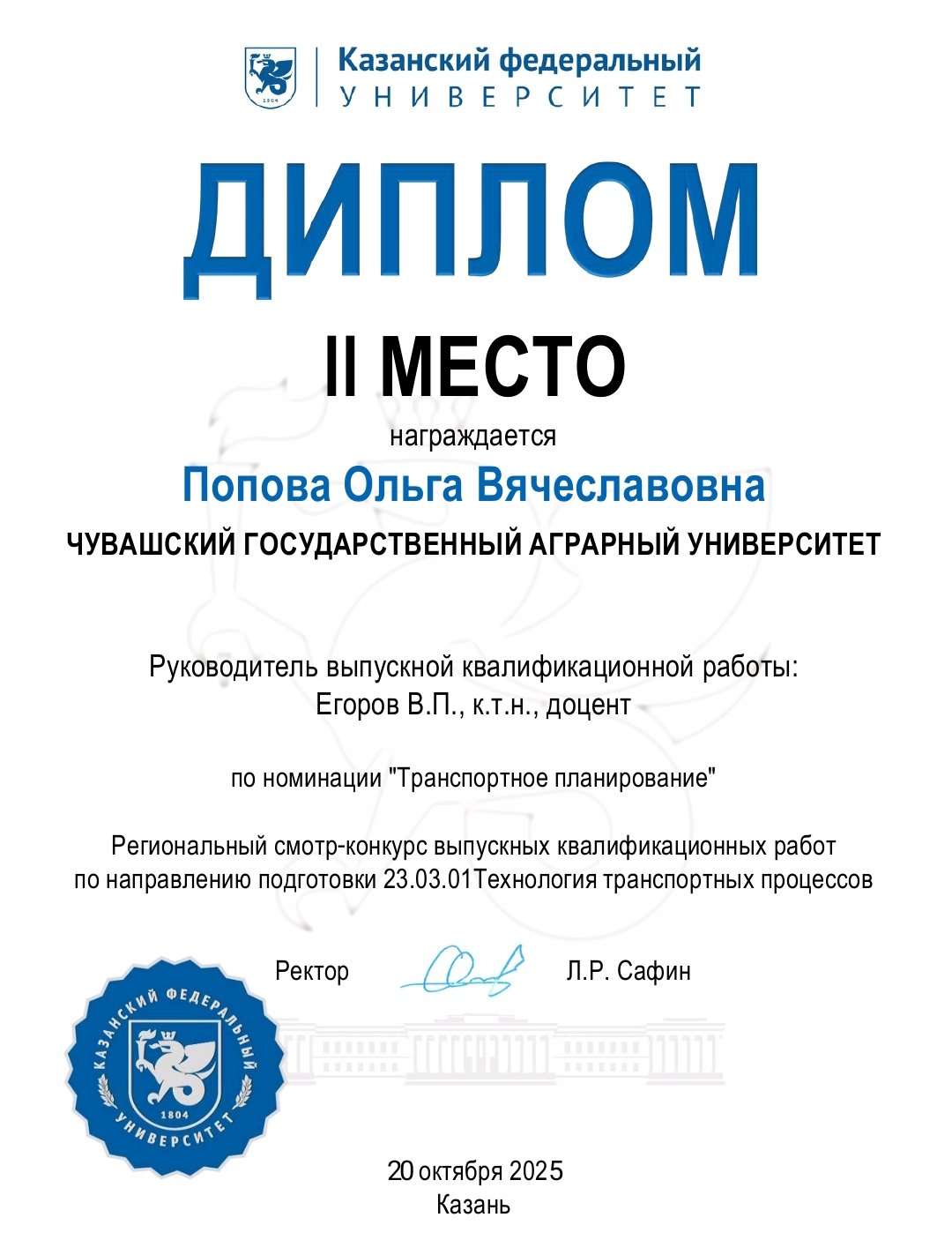 Жюри конкурса выпускных квалификационных работ отметило работу выпускницы Чувашского ГАУ